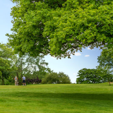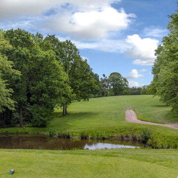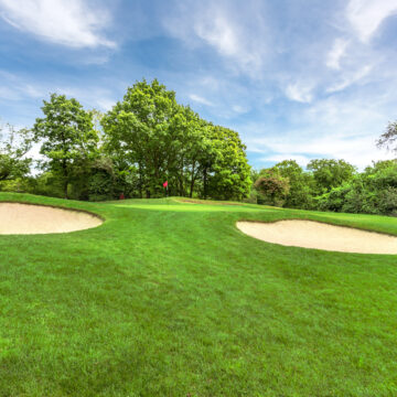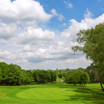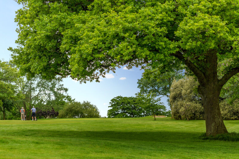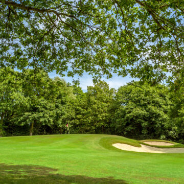 Long hitters can drive over the large oak on the corner of the dogleg, but this may leave a tricky half pitch shot. A safer play is to the corner although it leaves a longer approach.
