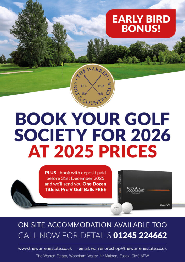 PLUS - book with deposit paid before 31st December 2025 and we’ll send you One Dozen Titleist Pro V Golf Balls FREE