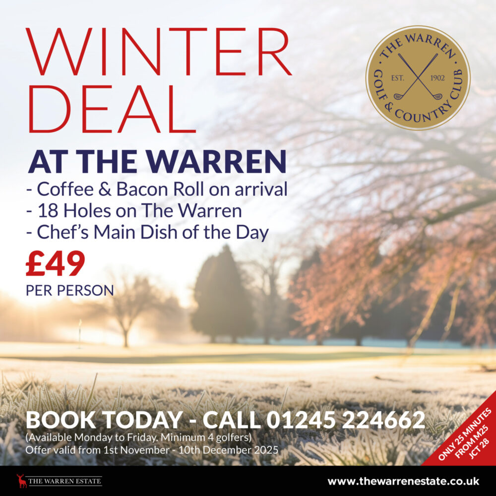 Enjoy Coffee & Bacon Roll on arrival, play 18 holes on The Warren, followed by Chef’s Main Dish of the Day
