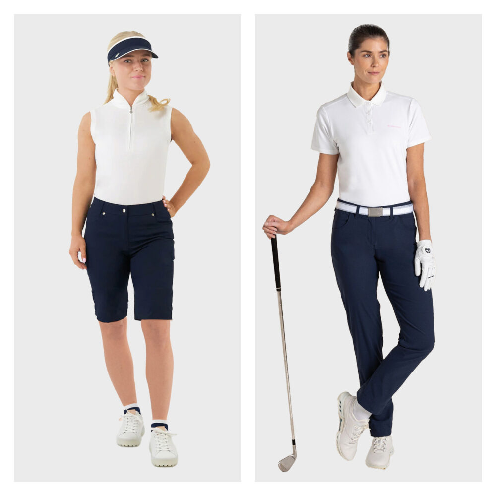 Golf dresses or sleeveless shirts with a collar, or be of a recognisable golf design.
