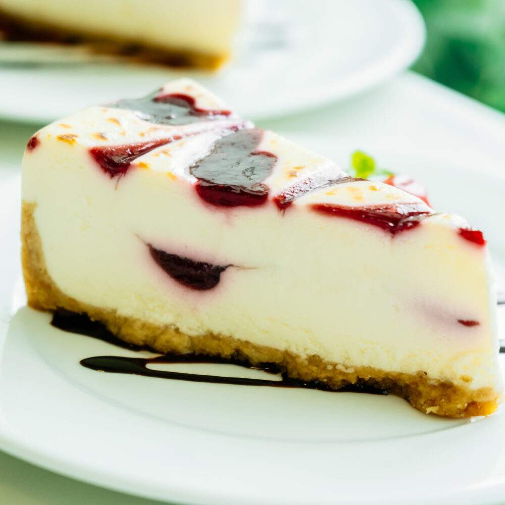 Vanilla Cheesecake topped with Fresh Fruit Compote and Fresh Mint