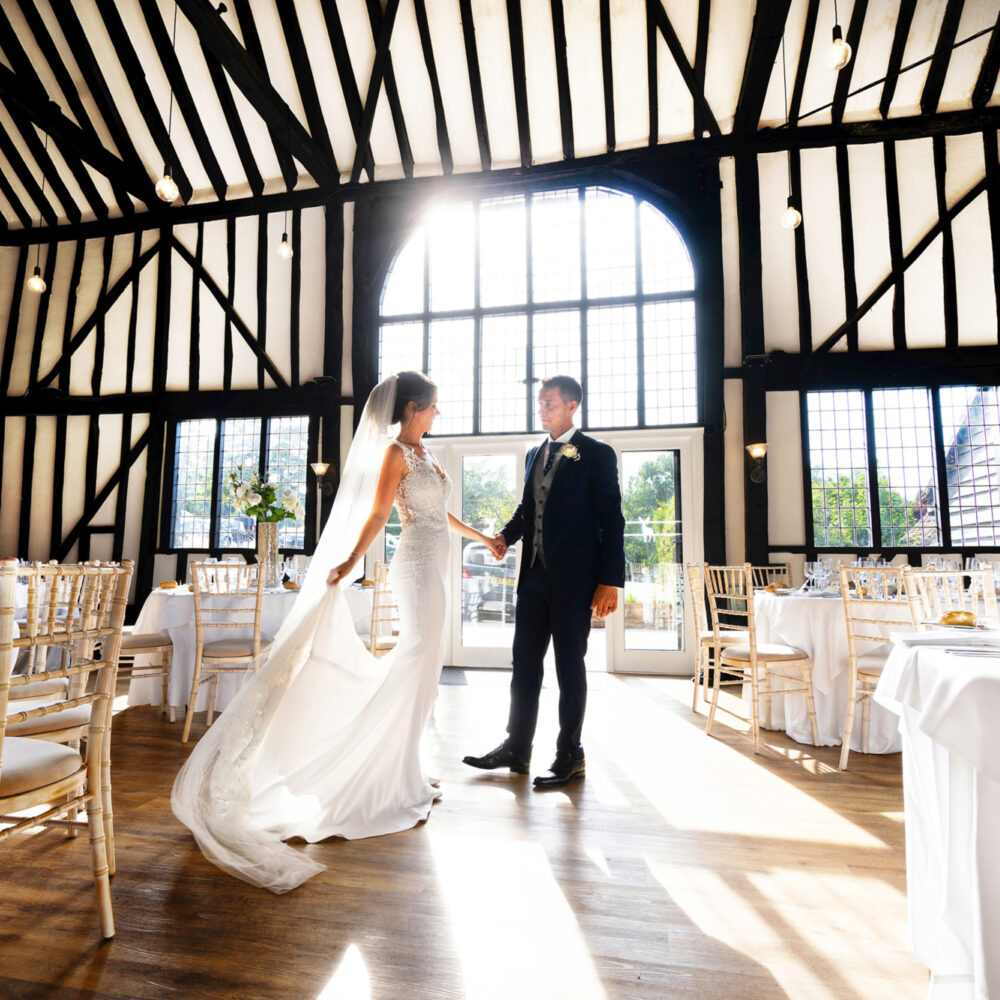 Your drinks and canapés can be enjoyed in The Piano Lounge Bar or out on the terrace. The Rose barn with its wealth of beams and vaulted ceiling, offers a light, bright space to then enjoy your wedding breakfast and transforms in to a perfect evening reception space.